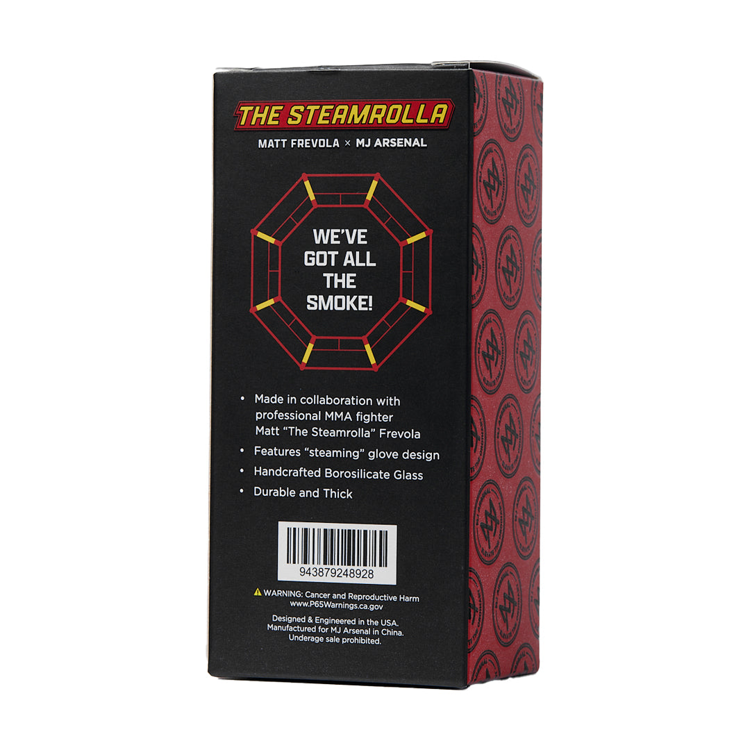 MJ Arsenal presents The Steamrolla – a fusion of functionality and artistry. Handcrafted from premium borosilicate glass, this exceptional steamroller features a one-of-a-kind MMA glove design, providing a smoking experience like no other.