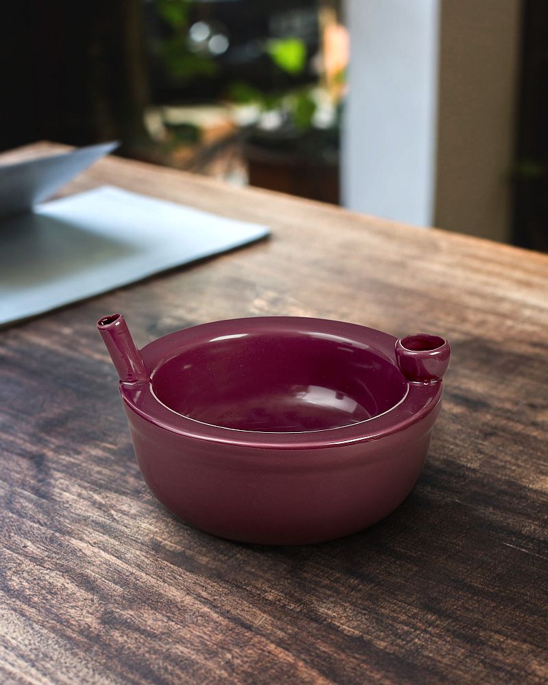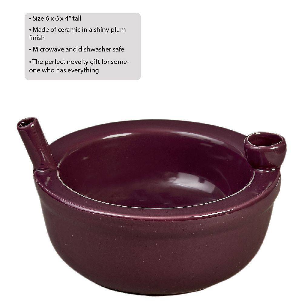 This on-trend cereal bowl is made of ceramic with a shiny plum finish. On the side of the bowl is a holder where you can pack your tobacco and light it. The smoke filters through the bowl to the mouthpiece.