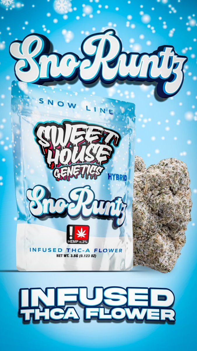 Elevate your cannabis experience with ā THCA Flower - Sweet House Genetics - SnowRuntz ā. Dive into a world where every crystal-covered bud brings you closer to cannabis nirvana. Begin your journey with SnowRuntz and discover the peak of cannabis luxury. Your adventure into the realm of exceptional THCA flower starts now! š